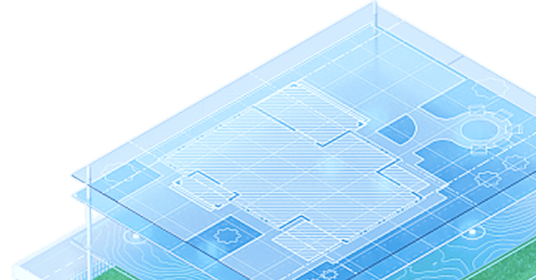 Отрисовка строительной сетки, контуров зданий, дорог и площадок, улиц и проездов, лестниц и ограждений с образмериванием и координацией. Автоматическое формирование ведомостей и разбивочного чертежа.